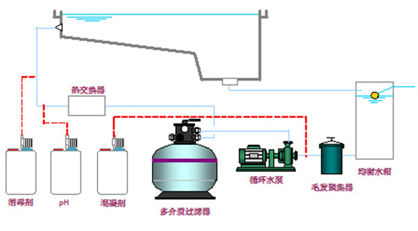 游泳池循環水處理工藝流程:
