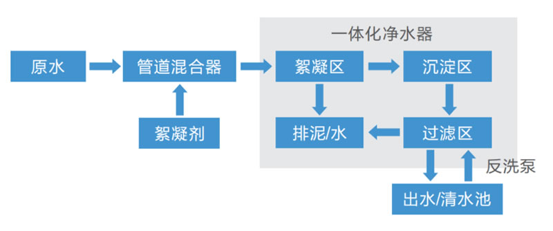 | 工藝 | 全自動一體化凈水設備工藝 | 傳統土建構筑物工藝 |