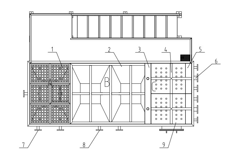 | 7 | 絮凝區排泥管 | 8 | 沉淀區排泥管 | 9 | 濾室擋板 |