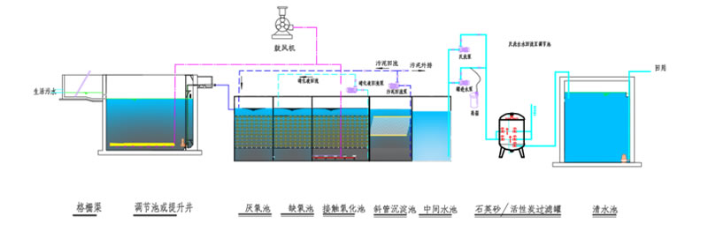 SLW-A/O/F一體化污水(shui)處(chu)理設備(bei)主要采用水(shui)解酸(suan)化/生物接(jie)觸氧化(A/O,A2/O)+活性炭過濾工藝,處(chu)理水(shui)量(liang)為10,20,30,40,50,60,80,100,120,150,200噸/天。(特(te)殊規格(ge)及要求可另行(xing)設計制造)