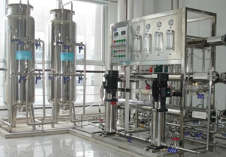 原水(shui)箱(xiang)→增壓泵(beng)→全(quan)(quan)自(zi)(zi)動(dong)多介(jie)質過(guo)濾器(qi)→全(quan)(quan)自(zi)(zi)動(dong)活性炭過(guo)濾器(qi)→全(quan)(quan)自(zi)(zi)動(dong)軟化水(shui)器(qi)→精密(mi)過(guo)濾器(qi)→一(yi)級反滲透(tou)裝置→中間水(shui)箱(xiang)→EDI水(shui)泵(beng)→EDI系統→微(wei)孔(kong)過(guo)濾器(qi)→用水(shui)點