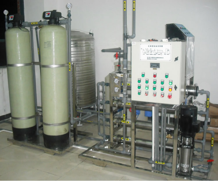 原(yuan)水→原(yuan)水箱→原(yuan)水泵(beng)→石英(ying)砂(sha)過濾(lv)器(qi)→活(huo)(huo)性(xing)炭過濾(lv)器(qi)→阻垢劑裝(zhuang)置(zhi)→精密過濾(lv)器(qi)→高(gao)壓泵(beng)→反滲透裝(zhuang)置(zhi)→活(huo)(huo)凈水箱→變頻供水→刷卡取水