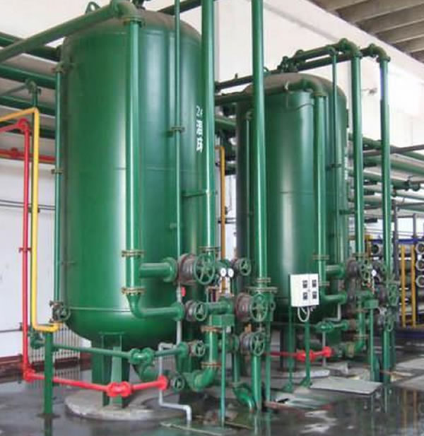 原水泵→石英(ying)砂(sha)過濾(lv)器(qi)→活(huo)性炭過濾(lv)器(qi)→陽床過濾(lv)器(qi)→脫碳塔(ta)→中間水箱→增壓泵→陰(yin)床過濾(lv)器(qi)→混床過濾(lv)器(qi)→純水箱