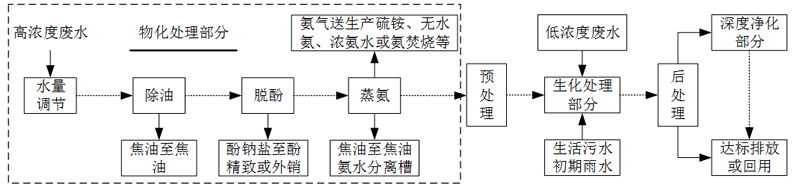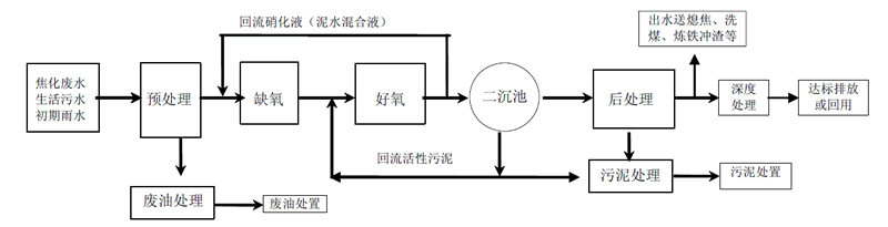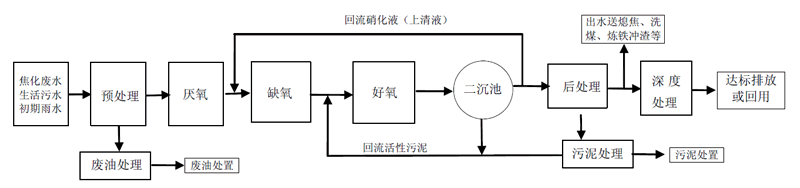 焦化廢(fei)水處理工藝流程