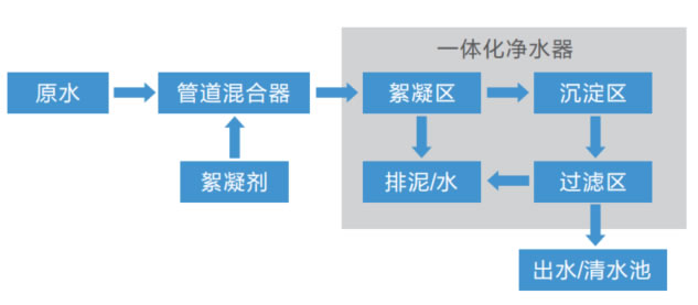 | 工藝 | 全自動一體化凈水設備工藝 | 傳統土建構筑物工藝 |