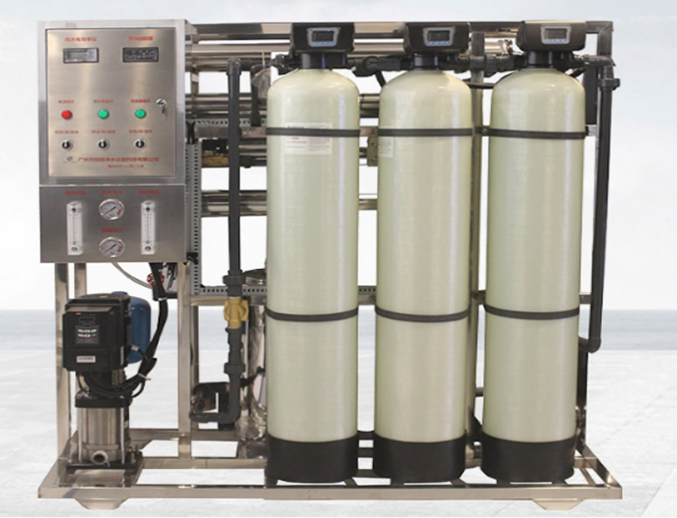原(yuan)水→原(yuan)水箱→原(yuan)水泵(beng)→石英(ying)砂(sha)過濾(lv)器(qi)→活(huo)(huo)性(xing)炭過濾(lv)器(qi)→阻垢劑裝(zhuang)置(zhi)→精密過濾(lv)器(qi)→高(gao)壓泵(beng)→反滲透裝(zhuang)置(zhi)→活(huo)(huo)凈水箱→變頻供水→刷卡取水