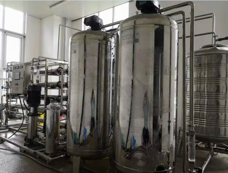 原水(shui)箱(xiang)→增壓泵→多介質(zhi)過(guo)濾器(qi)→活性(xing)炭過(guo)濾器(qi)→保安過(guo)濾器(qi)→高(gao)壓泵→一級反(fan)滲透→高(gao)壓泵→二級反(fan)滲透→純水(shui)箱(xiang)→臭(chou)氧滅(mie)菌→成品水(shui)箱(xiang)→純水(shui)泵→微(wei)孔過(guo)濾器(qi)→灌裝