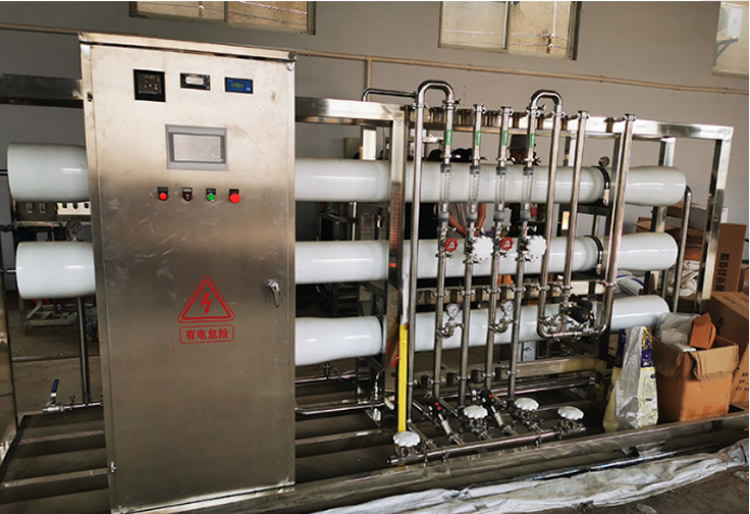 原(yuan)水(shui)(shui)→原(yuan)水(shui)(shui)加壓泵→多介質過(guo)(guo)濾器(qi)→活(huo)性炭(tan)過(guo)(guo)濾器(qi)→軟水(shui)(shui)器(qi)→精密過(guo)(guo)濾器(qi)→一級(ji)反滲透→PH調節→中間(jian)水(shui)(shui)箱→二級(ji)反滲透→純(chun)水(shui)(shui)箱→純(chun)水(shui)(shui)泵→微孔過(guo)(guo)濾器(qi)→用水(shui)(shui)點