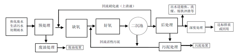 焦化廢(fei)水處理工藝流程