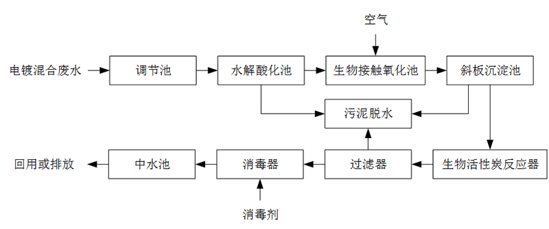 電鍍廢水(shui)處理(li)工藝(yi)流(liu)程(cheng)