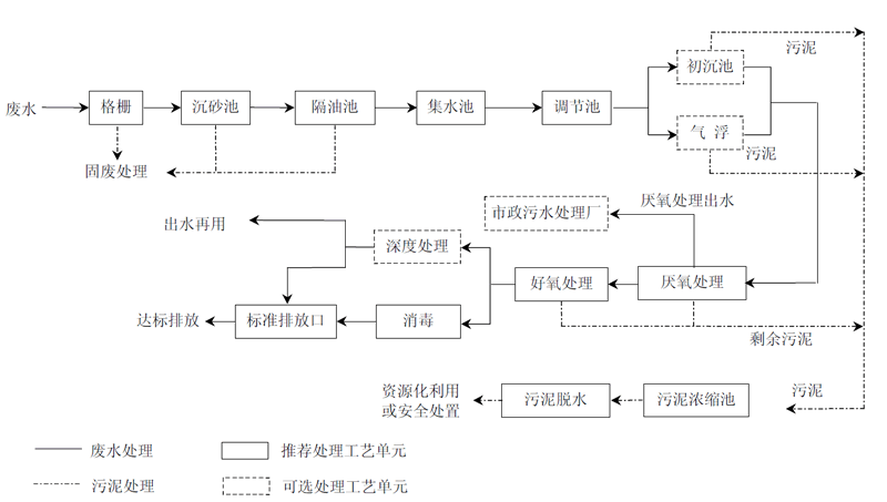 預處(chu)(chu)(chu)理(li)(li)(li)(li)(li)去除油脂和SS,調整PH,吹脫H2S等,以(yi)減輕廢水(shui)(shui)(shui)的(de)腐敗程(cheng)度和生化處(chu)(chu)(chu)理(li)(li)(li)(li)(li)的(de)負荷(he);根據出水(shui)(shui)(shui)要(yao)求(qiu)(qiu)設計不(bu)同的(de)生物(wu)處(chu)(chu)(chu)理(li)(li)(li)(li)(li)工藝(yi)(yi),當(dang)污水(shui)(shui)(shui)以(yi)排(pai)(pai)放(fang)市(shi)政污水(shui)(shui)(shui)處(chu)(chu)(chu)理(li)(li)(li)(li)(li)廠為處(chu)(chu)(chu)理(li)(li)(li)(li)(li)要(yao)求(qiu)(qiu)時采用(yong)厭氧(yang)生物(wu)處(chu)(chu)(chu)理(li)(li)(li)(li)(li)工藝(yi)(yi),當(dang)以(yi)附近排(pai)(pai)放(fang)為處(chu)(chu)(chu)理(li)(li)(li)(li)(li)要(yao)求(qiu)(qiu)時宜采用(yong)厭氧(yang)、好氧(yang)生物(wu)處(chu)(chu)(chu)理(li)(li)(li)(li)(li)相(xiang)結合(he)的(de)處(chu)(chu)(chu)理(li)(li)(li)(li)(li)工藝(yi)(yi),當(dang)以(yi)水(shui)(shui)(shui)回用(yong)為處(chu)(chu)(chu)理(li)(li)(li)(li)(li)要(yao)求(qiu)(qiu)時,需(xu)在厭氧(yang)、好氧(yang)工藝(yi)(yi)后加設深度處(chu)(chu)(chu)理(li)(li)(li)(li)(li)工藝(yi)(yi)。